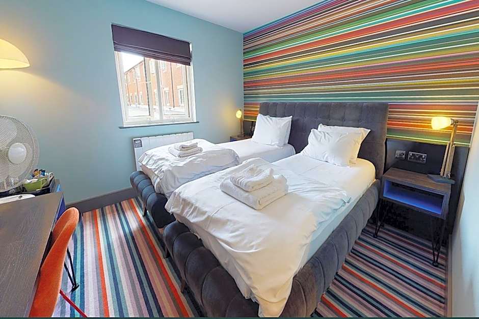 This bright and modern twin room offers free WiFi, 2 single Sealy beds, flat-screen TV, hairdryer and iron/ironing board.